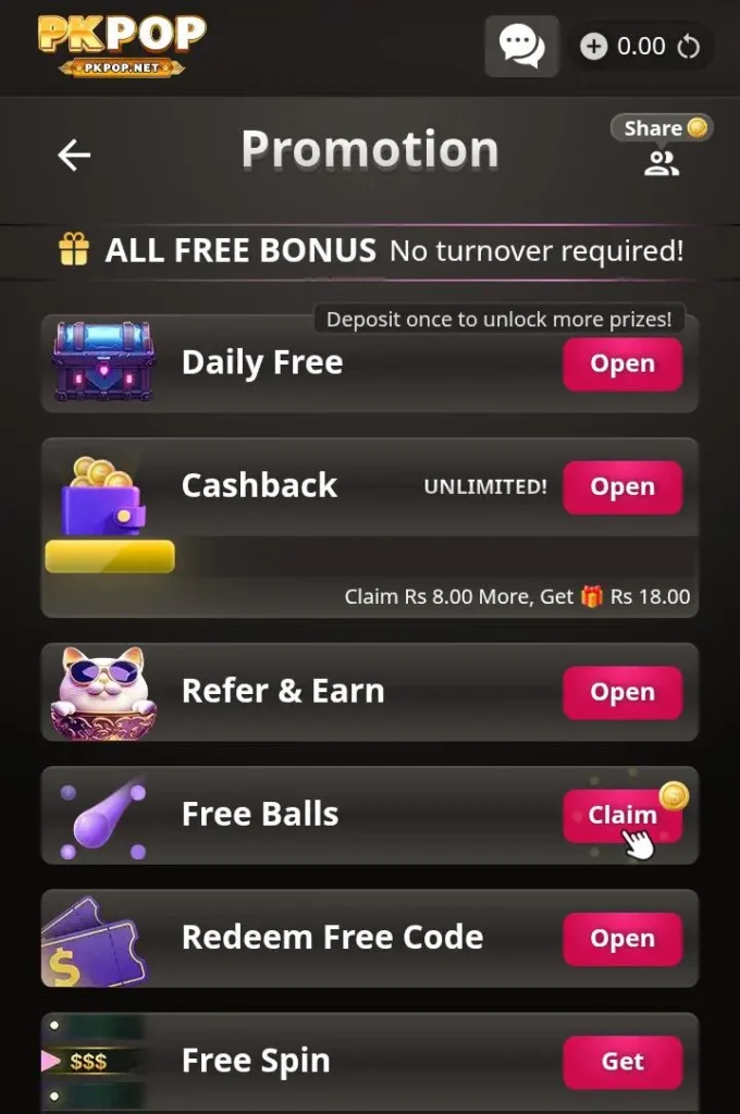 One of the most attractive features of PK POP Game is its rewarding bonus system. These bonuses are designed to enhance user engagement and provide extra value to players.